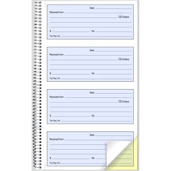 Pinit Blueline® Receipt Book, 200/bk SKU BLI28034 $25.29 Quantity discounts available QuantityPrice (0) No Reviews yet Memo Quantity -+ Add to Cart Details Carbonless receipts and safety tint on original. Flexible cover. Spiral bound. 2-part. 4 receipts per page, 200 receipts per book. 10-5/8" x 6-5/8". E... DetailsBackDetailsCarbonless receipts and safety tint on original. Flexible cover. Spiral bound. 2-part. 4 receipts per page, 200 receipts per book. 10-5/8" x 6-5/8". English. Ratings and ReviewsNo reviews availableBe the first to Write a Review