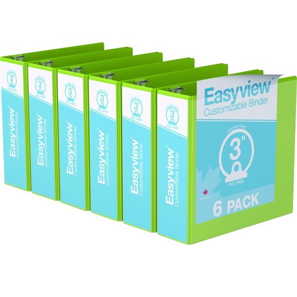 A clear overlay on front cover, spine, and back allows for customization, making them ideal for manuals, reports, and presentations. Contains a miminum of 42% post-consumer recycled material. Features ink transfer resistant clear overlay, interior front and back cover pockets for loose document security. Back mounted rings allow pages to lie flat. PVC-free polypropylene. 3" capacity. Lime Green.