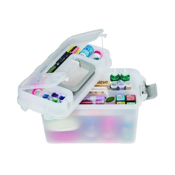 Pinit Deflecto® Multi-Compartment Storage Box, Clear/Gray SKU DEF02968 $87.49 Quantity discounts available QuantityPrice (0) No Reviews yet Memo Quantity -+ Add to Cart Details Clear box with removable lid, lift out tray and deep compartments. Features lift out tray with 1.5 inch storage, lid storage for smaller supplies, stu... DetailsBackDetailsClear box with removable lid, lift out tray and deep compartments. Features lift out tray with 1.5 inch storage, lid storage for smaller supplies, sturdy latch and carrying handle. Plastic. 7-4/5"W x 15-1/2"D x 10-1/5"H. Clear/Grey. Ratings and ReviewsNo reviews availableBe the first to Write a Review