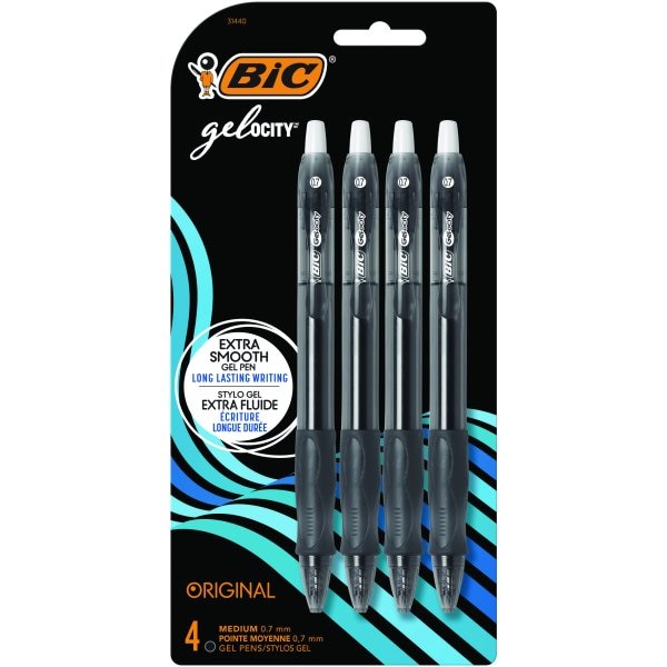 Bic® Gel-ocity® Original Long-Lasting Retractable Gel Pens, 0.7mm, Black, 4/pkg