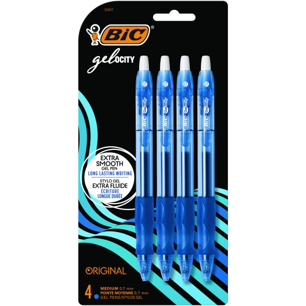 Bic® Gel-ocity® Retractable Gel Pens, 0.7mm, Blue, 4/pkg