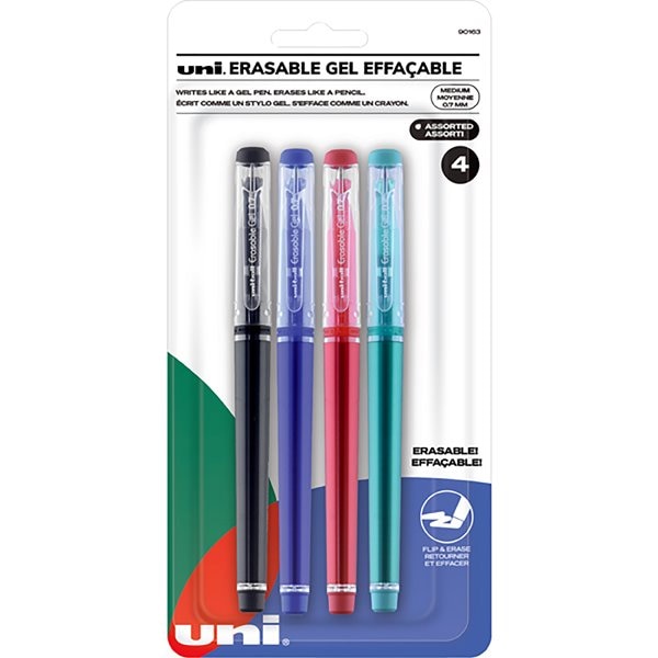 uni-ball® Erasable Gel Retractable Pens, 0.7mm, Assorted Fashion Colours, 4/pkg