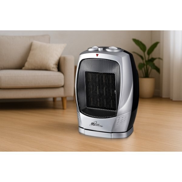 2 heat settings (750W/1500W) and fan only setting. Provides safe ceramic warmth. Overheat protection and safety tip over switch. Wide angle oscillation provides even heat distribution. Top mount controls for easily setting heat, oscillation and thermostat.